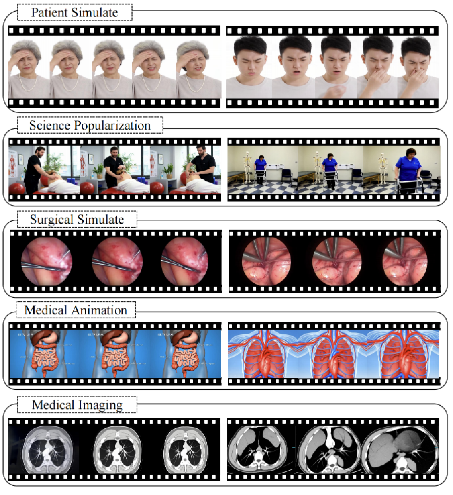 作为首个医学视频生成模型,MedGen不仅保证了医学内容的准确性,还实现了高质量视频生成,展现了其在手术模拟、医学教育、科普动画与远程会诊等领域的广泛应用潜力。